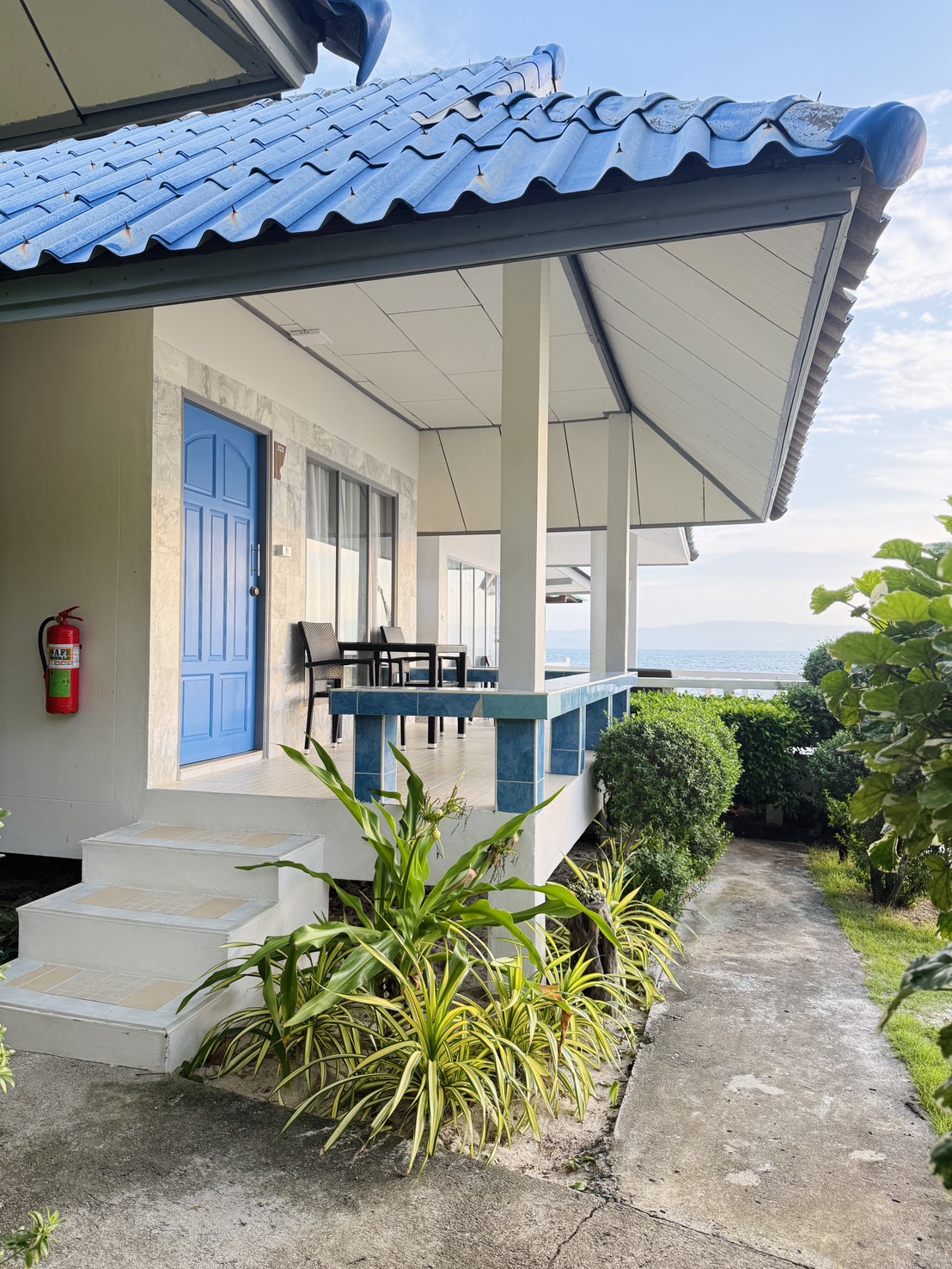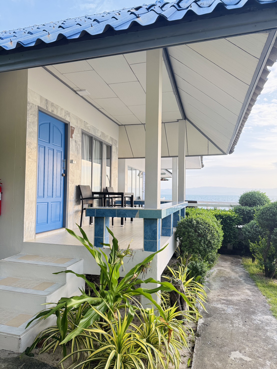 This villa has a balcony, tumble dryer and flat-screen TV. You can have a beautiful sea view from this room. The room is next to the beach. can look out to see the sea without obstruction.